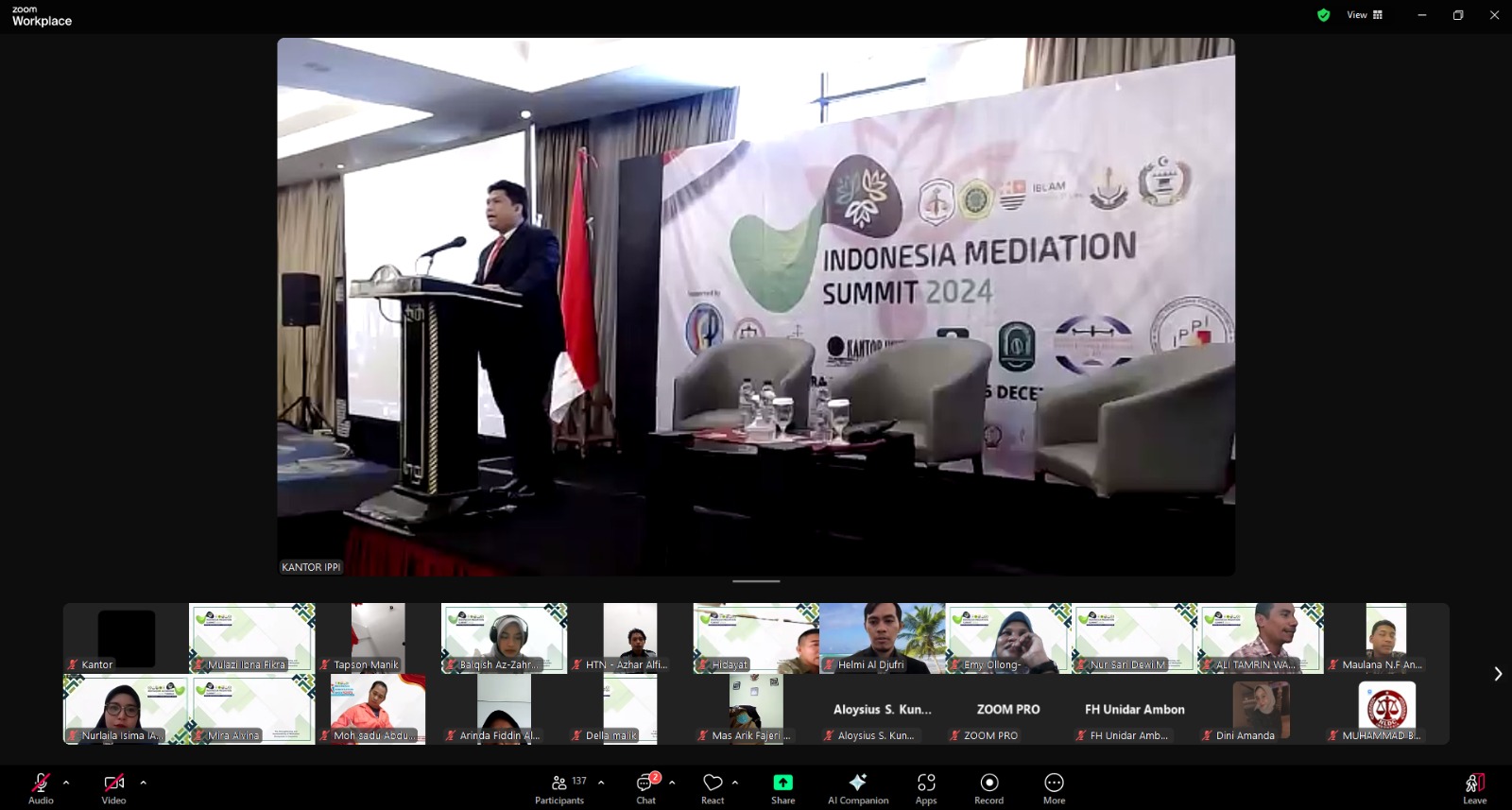 Untuk memastikan akses yang luas, acara ini juga terbuka bagi peserta secara daring melalui platform Zoom Meeting. Dengan format hibrida ini, Indonesia Arbitration Week & Indonesia Mediation Summit 2024 berhasil menjangkau peserta dari berbagai penjuru dunia, memperkuat kolaborasi internasional dalam bidang hukum dan mediasi.